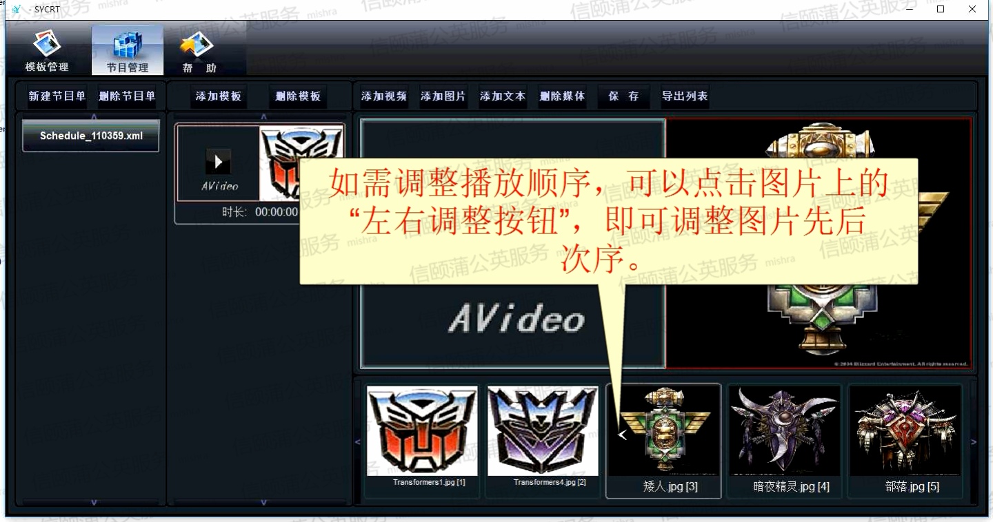 17、如需调整播放顺序,可以点击图片上的“左右调整按钮”,即可调整图片先后次序。