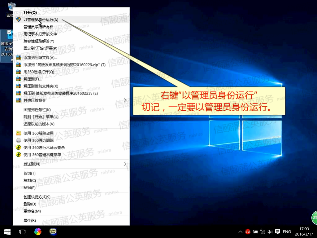 1、选则安装文件,右键"以管理员身份运行"。切记,因为windows7以上系统有权限问题,所以一定要以管理员身份运行安装。