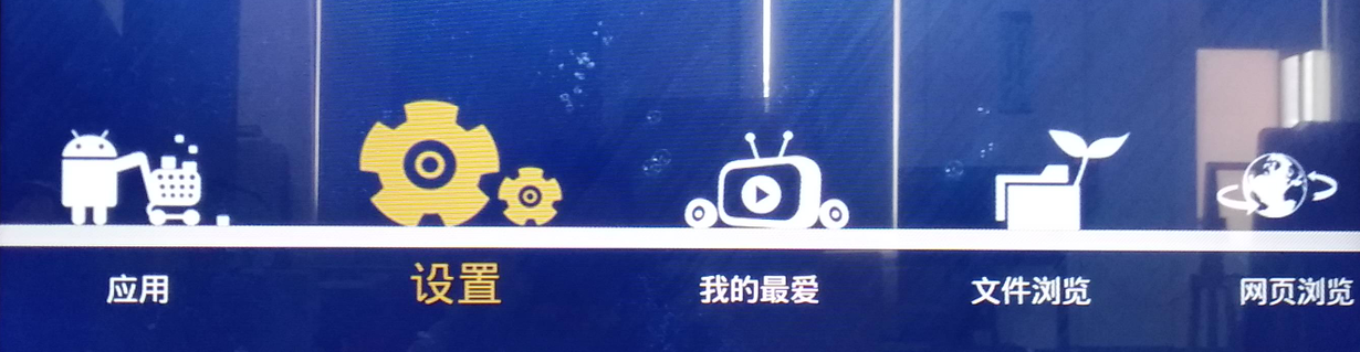 2、使用遥控器上方向键,选中“设置按钮”,按“OK”键,进入设置选项。