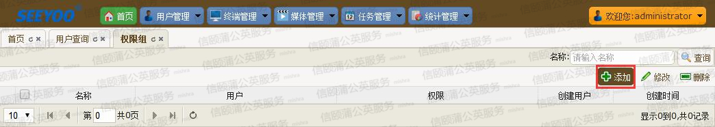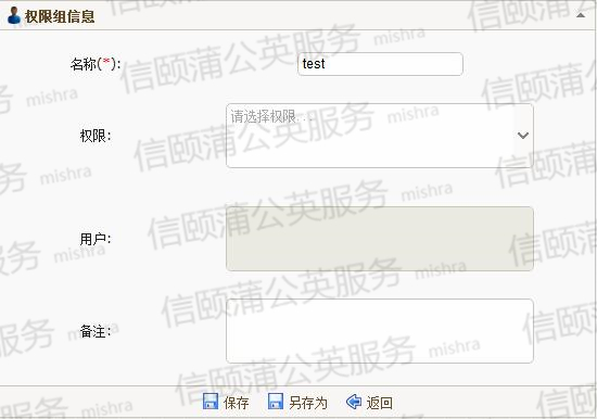 点击添加按钮,可以增加权限组,并对权限组分配相应的一个或多个权限,如下图: