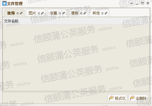 3.14选择终端点击文件管理可查看该终端内的播放文件,点击格式化可将终端内SD卡或硬盘格式化,点击全删除可删除终端内的播放文件