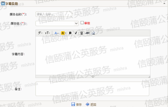 3.点击添加字幕可添加字幕的媒体文件,填写完成点击保存即可。