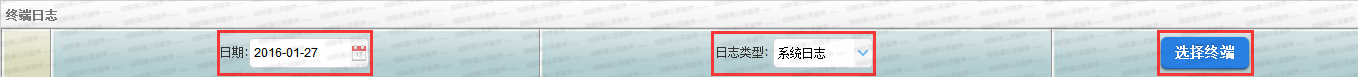 2、依次输入需要查询的日期、日志类型,然后点击右侧的选择终端按钮。
