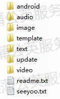 2、把下载的压缩包解压后,拷贝目录下所有目录和文件至USB设备根目录下,并手动创建一个seeyoo.txt文档。(如压缩包内已有seeyoo.txt,则无需重复创建。)