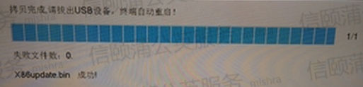 4、拷贝完成后,系统会提示拔掉USB设备。数秒后终端机会自动重启。
