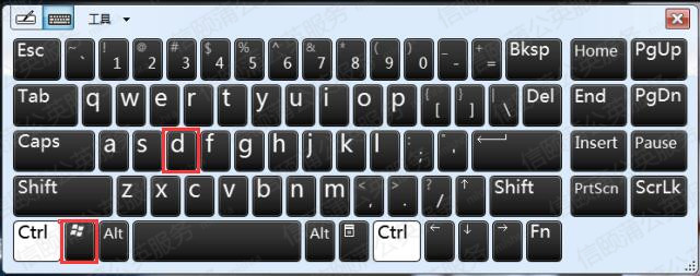 3、点击软件盘上"windows"+"D"键。回退到桌面。
